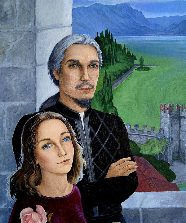 Ольга Пардесси - Двое. "На озере Гарда в гостях у Скалигеров" - (Фрагмент, оргалит/масло, 2024-2025)